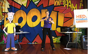 NED's Mindset Mission is a fun, dynamic 45 minute school assembly for elementary aged students that employs yo-yo tricks, magic, comedy, visuals, and storytelling to inspire kids with NED's message: Never give up, Encourage others, and Do your best.